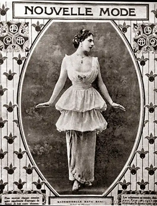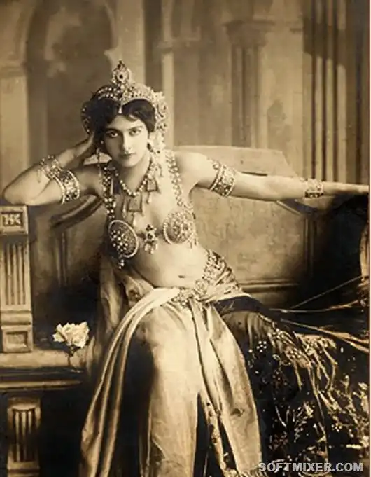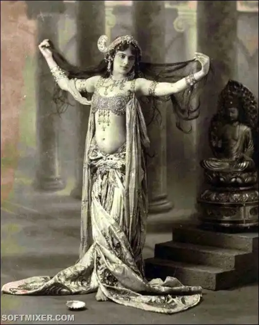 Она также утверждала, что впервые танцевала обнаженной еще в 13-летнем возрасте перед алтарем индуистского храма. Внешность Маты Хари соответствовала придуманной ей легенде.