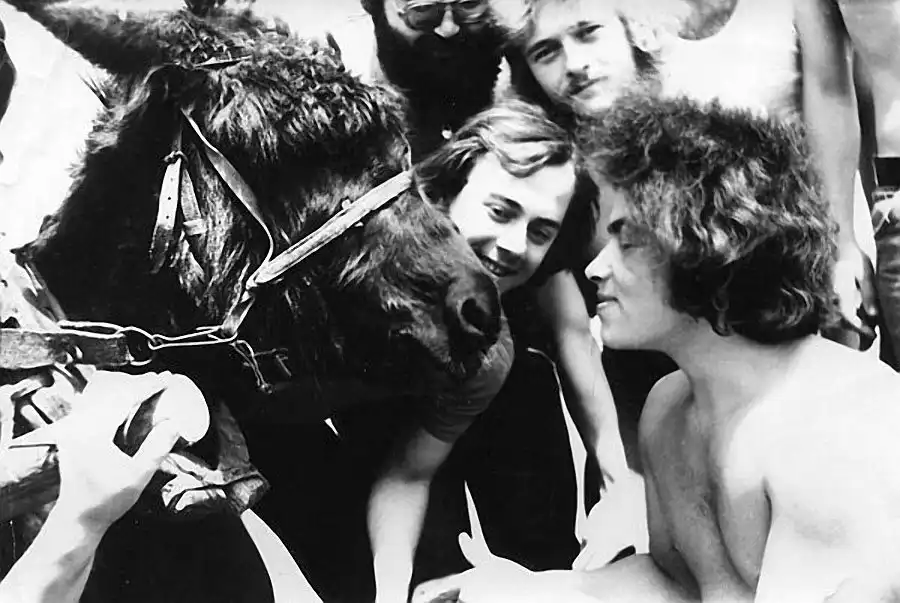 Вот ещё одно фото тех лет - группа и Николай Расторгуев с местным жителем в степях Казахстана