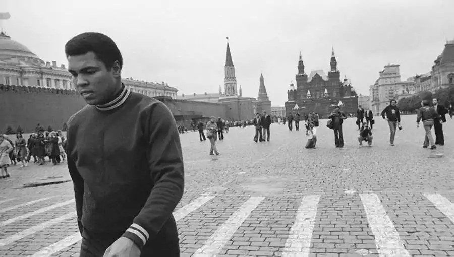 Представьте, в те времена... В самом сердце Москвы, у Мавзолея В. И. Ленина, прохаживается полуголый чернокожий гигант мрачноватого вида. Кое-кто очень забеспокоился. Забегали люди-невидимки, посыпались звонки в разные инстанции... Утром, где-то около 8.30, когда в "Метрополе" собрались все ответственные за американскую делегацию лица, прозвучали грозные вопросы: кто выпустил Али из-под контроля, почему ему не объяснили, что такое Красная площадь? "Позор, а если бы он на площади что-то сделал поутру?.." Одним словом, наволновались. Потом успокоились, приняли решение — обязать сопровождающего переводчика ночевать в гостинице и быть готовым к разного рода неожиданностям со стороны высокого гостя.
