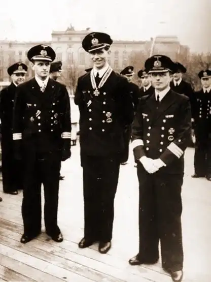 U 181 Карла-Августа Ландфермана (в центре) Рыцарским Крестом.