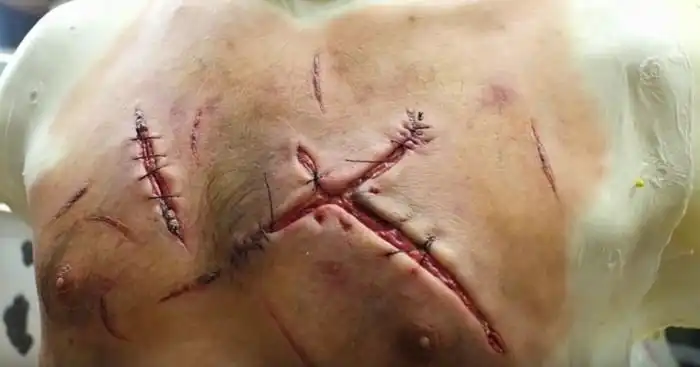 Последний фильм с Леонардо Ди Каприо "Выживший", который вышел в прокат 25 декабря 2015 года, хорошенько пощекотал нервы зрителям, особенно запомнилась сцена с гризли, который чуть было не разорвал главного героя на части. Пользователи сети очень ждут и надеются, что, наконец-то, любимый артист получит долгожданный "Оскар", а также, что в этом году сеть не наполнят шутки о том, что престижная кинопопремия вновь обошла его стороной. Далее предлагаем взглянуть, как наносили грим Ди Каприо. Аккуратно фото жуткие, но не забывайте во время просмотра о том, что это всего лишь грим, а не настоящие раны.