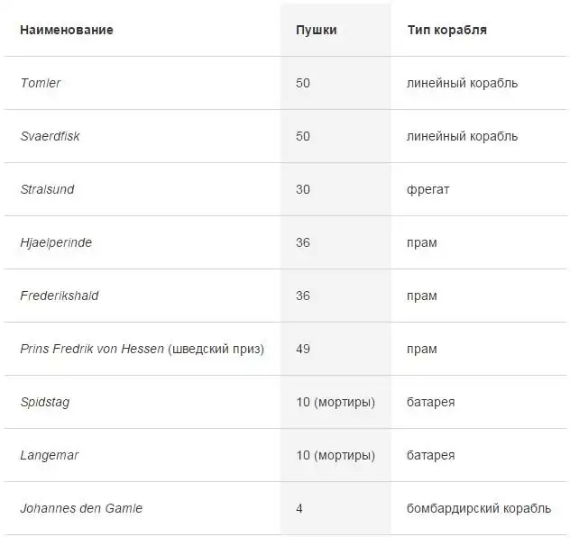Шведские корабли и их судьба после взятия Марстранда