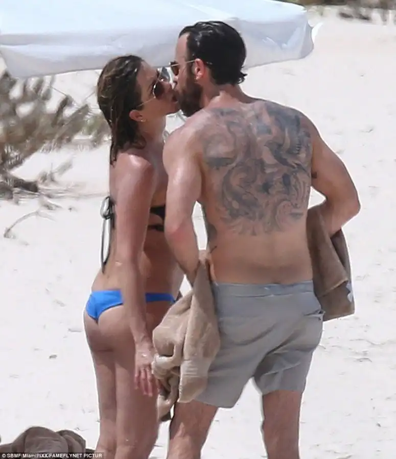 Журналисты заметили округлившийся живот Дженнифер Энистон во время ее отдыха с супругом Джастина Теру на Багамских островах.