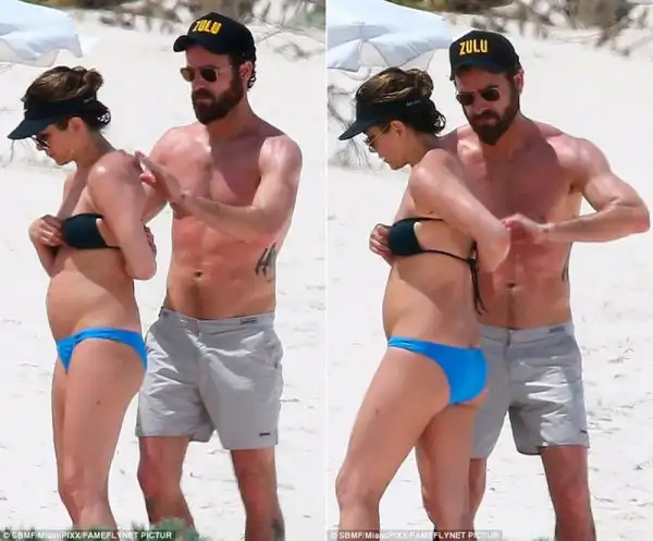 На снимках Энистон с отдыха на Багамах действительно видно, что у обычно стройной и подтянутой Дженнифер увеличился живот.