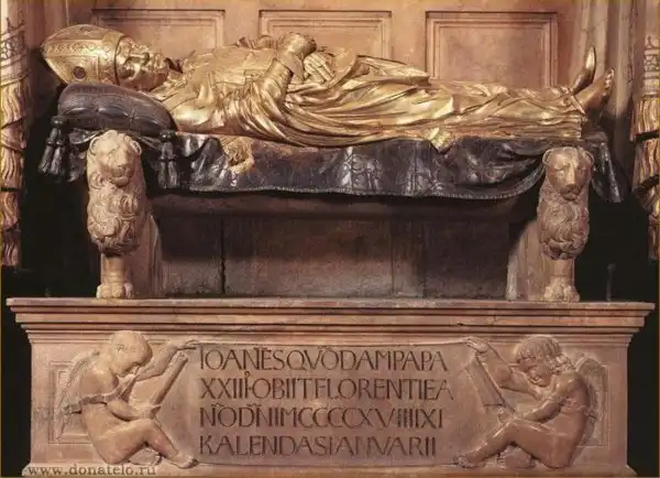 Иоанн XXIII умер 22 декабря 1419 года и был похоронен в баптистерии во Флоренции. Величественный монумент над его захоронением был создан скульпторами Донателло и Микелоццо в 1424—1425 годах.