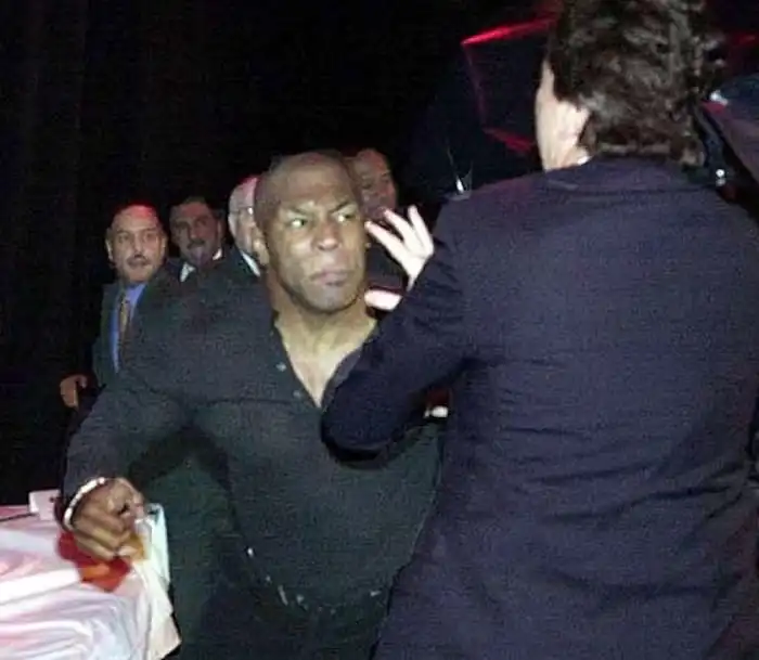 В ходе нее Тайсон атаковал телохранителя Льюиса, а затем в возникшей свалке вцепился зубами в ногу и самому чемпиону.