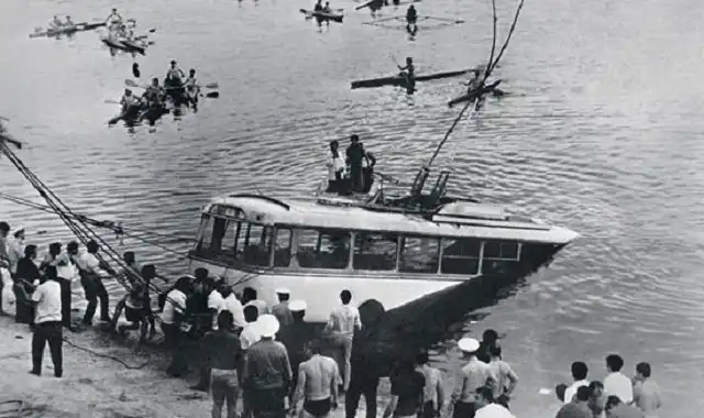 Из Ереванского водохранилища троллейбус вытащили краном. Чтобы подцепить крюк, Шаваршу пришлось снова нырять на глубину.