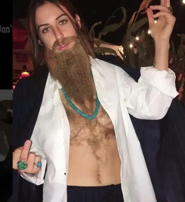 Одна из трех непутевых дочерей Брюса Уиллиса и Деми Мур - Скаут Уиллис - ради костюмированной вечеринки перевоплотилась в брутального мужика с бородой и грудью нараспашку. Откуда взялись волосы для тела, история умалчивает.