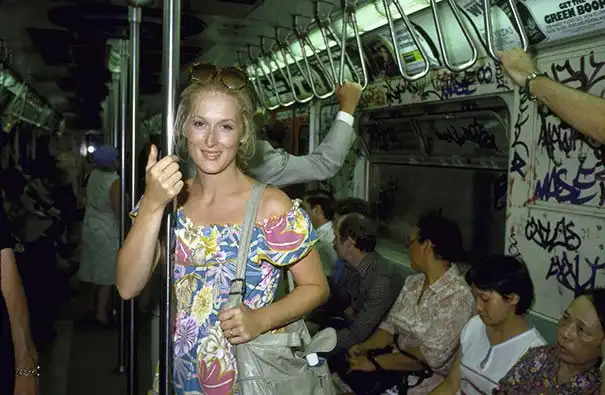 Мэрил Стрип в Нью-Йоркской подземке, начало 1990-х