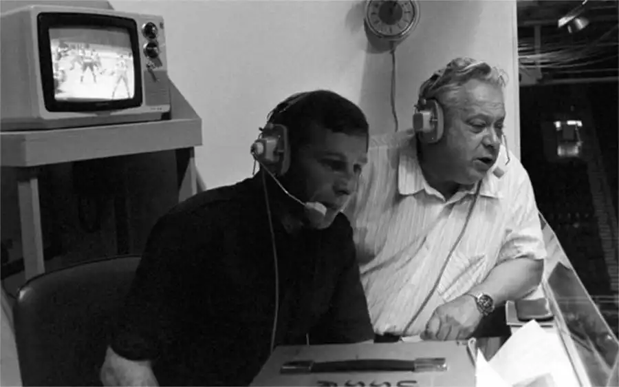 Канада. Виннипег. Кубок Канады по хоккею. Репортаж ведут советские комментаторы Николай Озеров и Евгений Майоров. 4 сентября 1981 года. Фото Валерия Зуфарова /Фотохроника ТАСС/