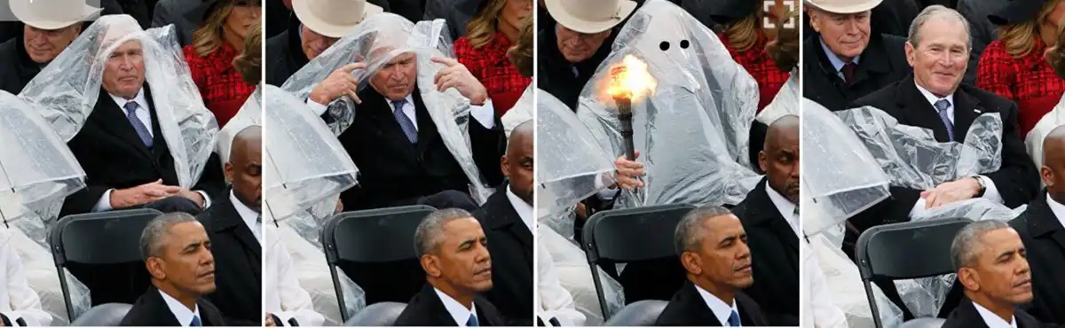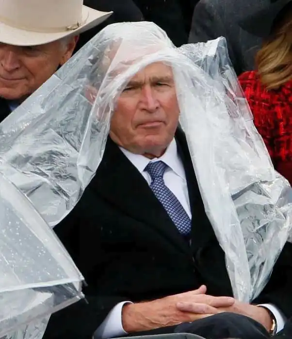 Битва Джорджа Буша-младшего с дождевиком на инаугурации Трампа
