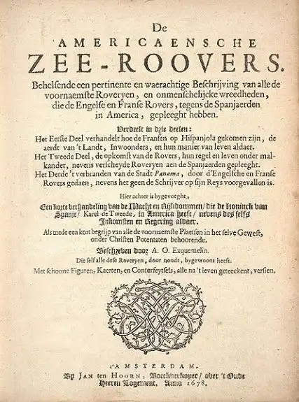 В 1669 году Эксквемелин, выкупившись из рабства, стал врачом Генри Моргана. Его записки были изданы в Голландии в 1678 году под названием «Пираты Америки», принеся 34-летнему доктору славу (еще при живом Генри Моргане). В записках имя пирата автор изменил на Джон.