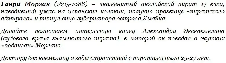 Эксквемелин так описывает начало карьеры знаменитого пирата: