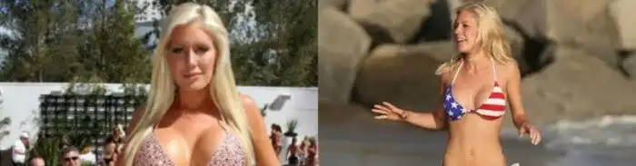 До участия в реалити-шоу "Голливудские холмы" Хайди Монтаг была обычной американкой. Подогревать интерес публики к своей персоне она решила с помощью изменений в собственной внешности. Неизвестно, как теперь девушка плавает с таким размером груди, да и "буйки" так и норовят освободиться от лифа купальника.