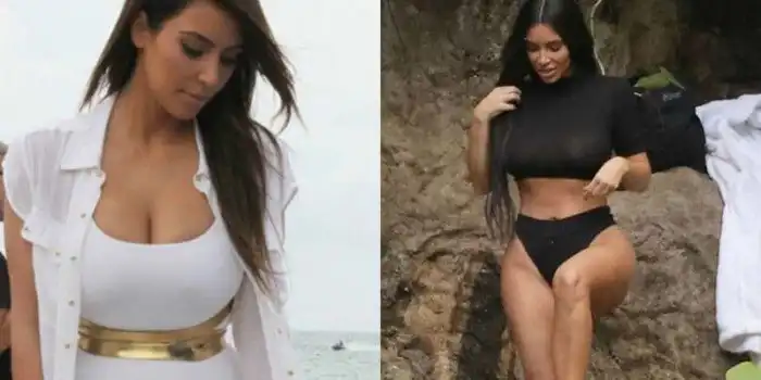 Телезвезда любит демонстрировать свои знаменитые формы. И если белый наряд кажется вполне уместным, то откровенность черного полупрозрачного купальника зашкаливает.