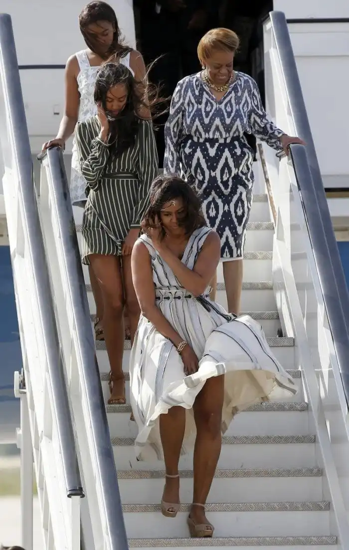 1. Мишель Обаму и ее дочь Малию застал врасплох ветер