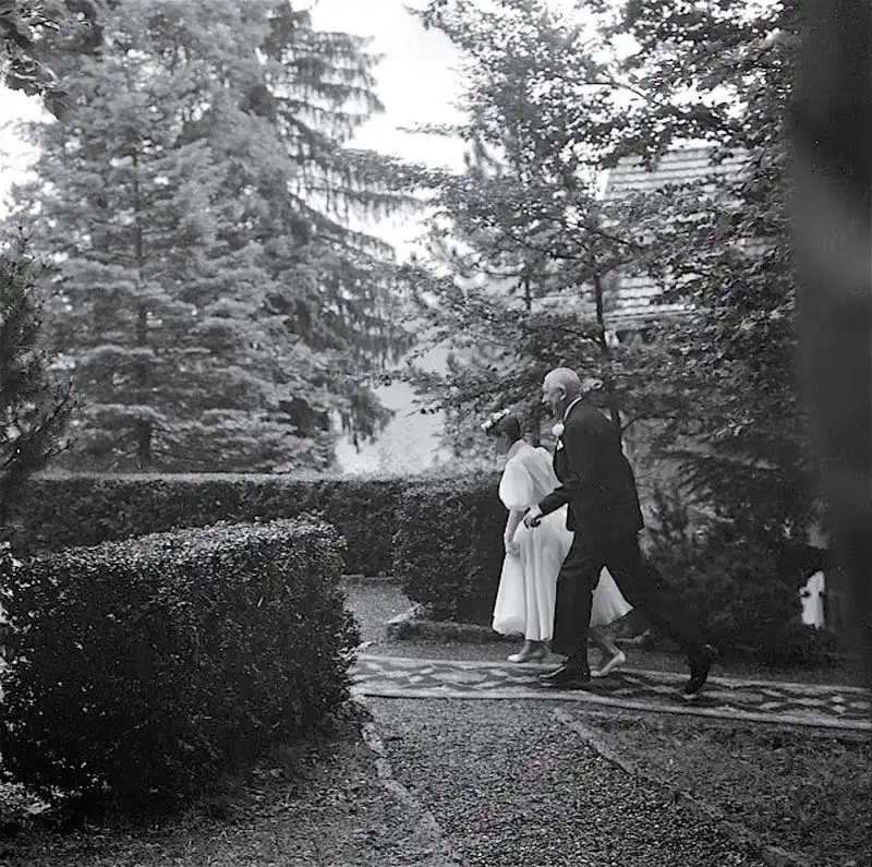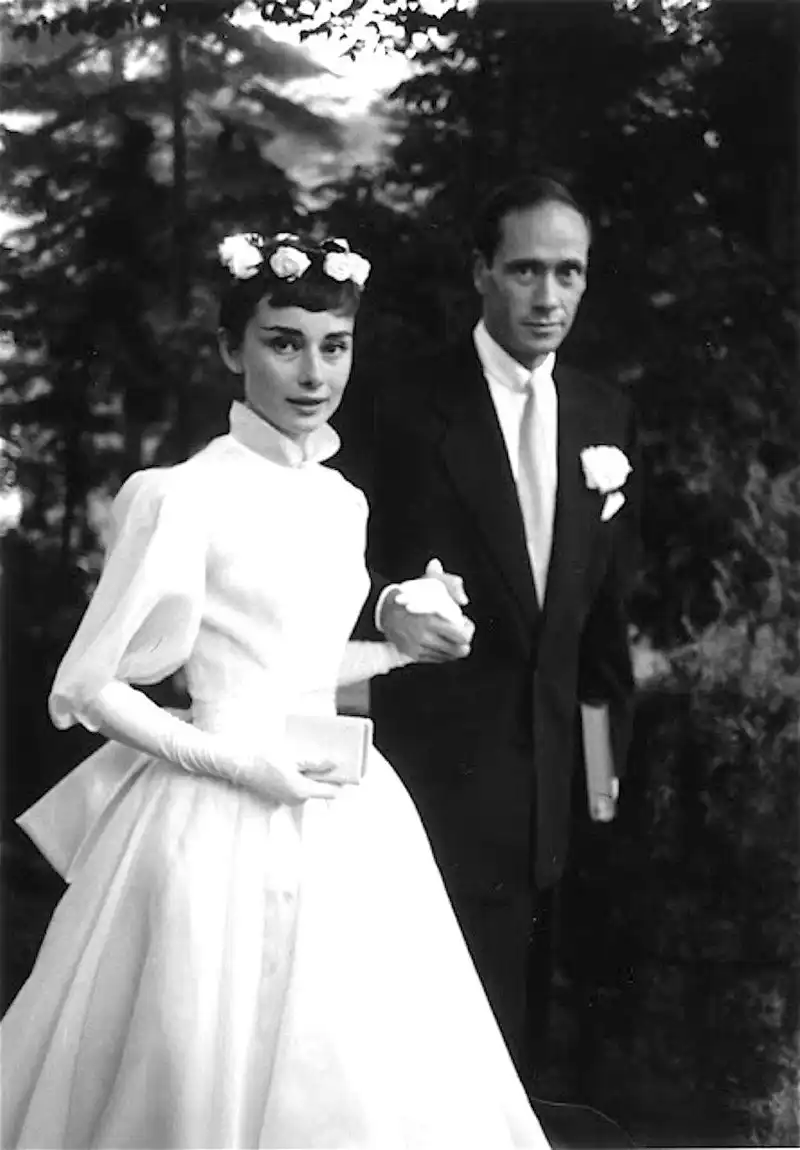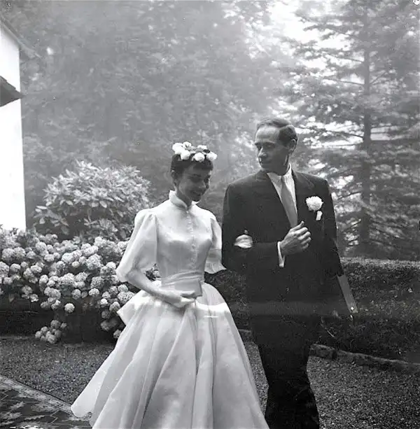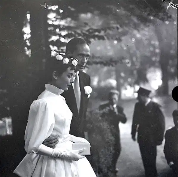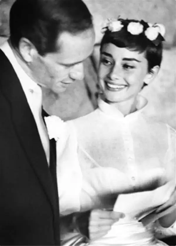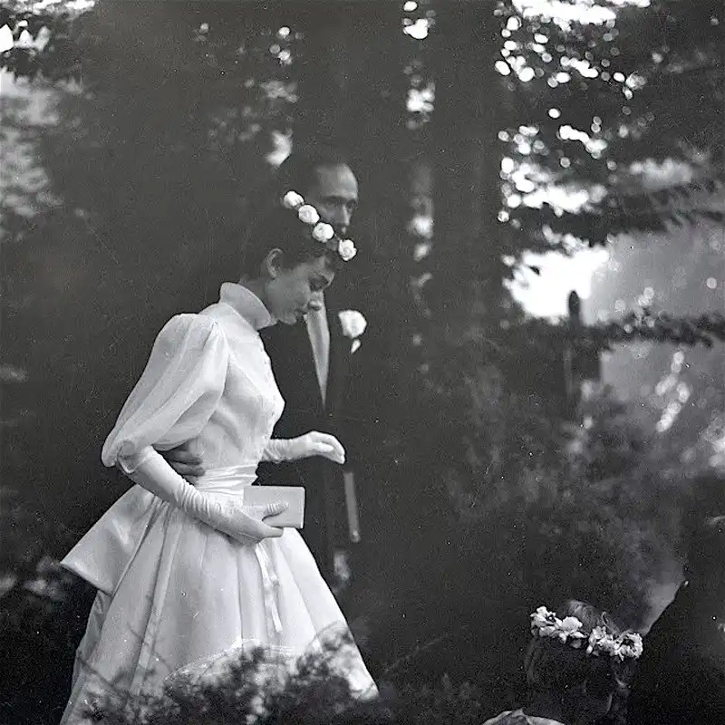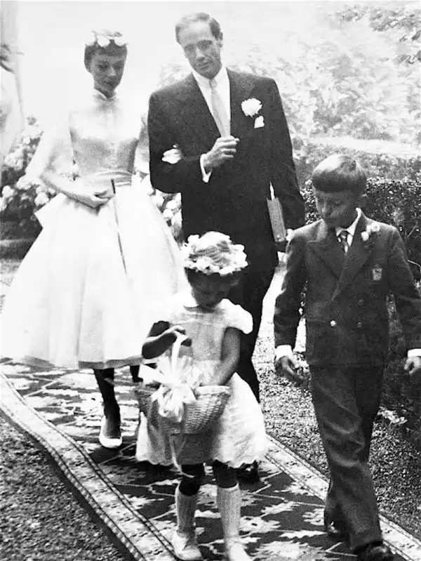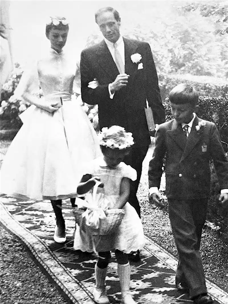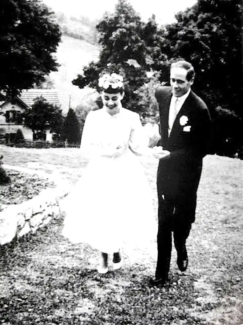 Это действительно очень редкие семейные фото Одри, на которых запечатлено ее бракосочетание с Мелом Феррером, состоявшееся 25 сентября 1954 в протестантской церкви, постройки 13 века, в швейцарском городке Бюргеншток, у самого подножия гор.