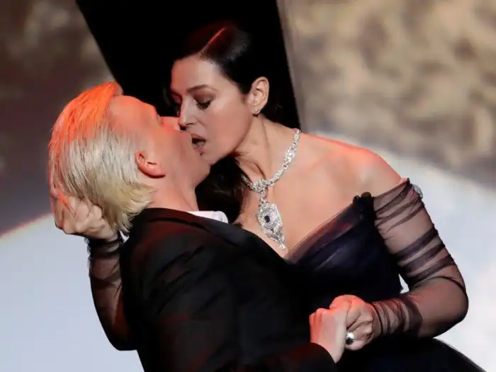 Моника Беллуччи публично слилась в поцелуе с французским комиком