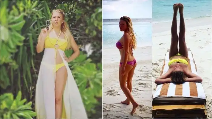 На пляже почти без макияжа: российские и зарубежные звезды в купальниках