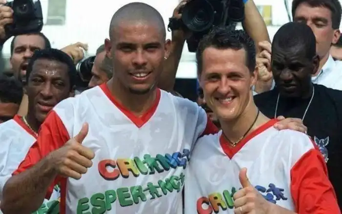 Роналдо и Михаэль Шумахер во время благотворительного матча ЮНИСЕФ в Рио-де-Жанейро, 2001 г.