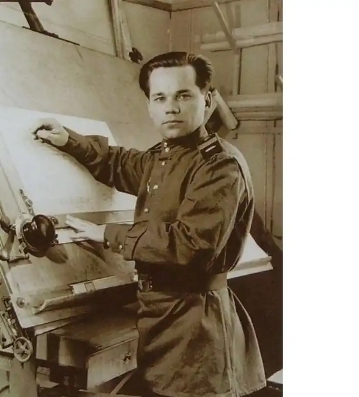 Старший сержант Михаил Калашников во время работы над проектом АК. СССР, 1947 год.