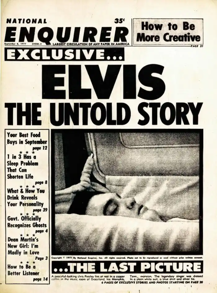 Последний снимок, опубликованный в газете National Enquirer 6 сентября 1977 года под сообщением о смерти Элвиса