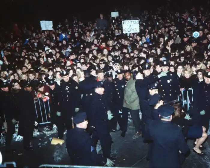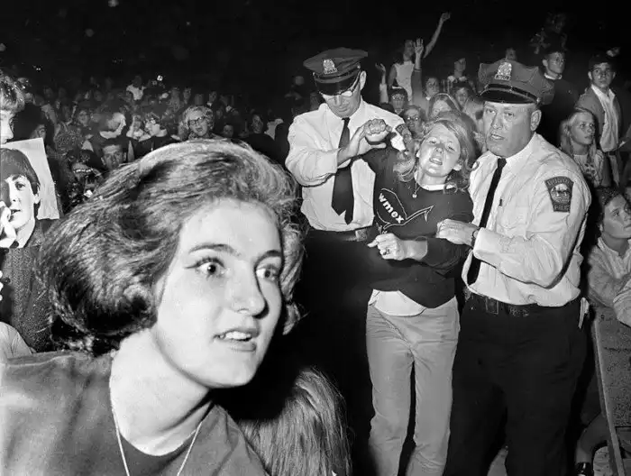 Полиция уводит безумных фанаток с концерта в 1964