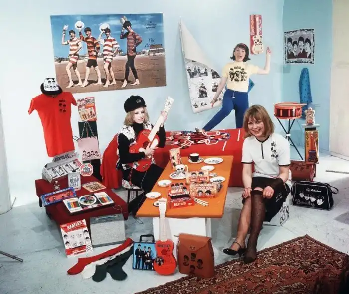 Модели рекламируют одежду и атрибутику The Beatles