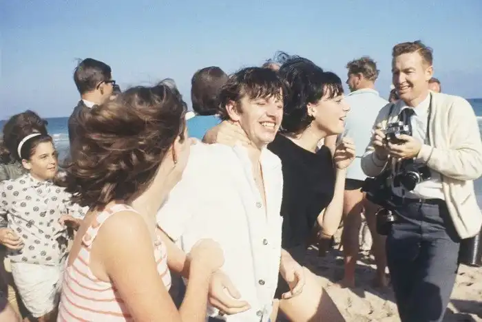 Поклонницы "схватили" барабанщика Ринго Старра на пляже Майями, 1964