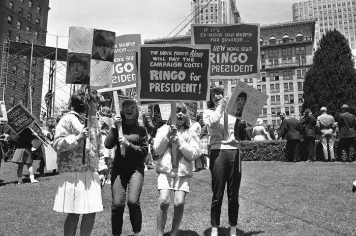"Ринго Старра - в президенты!" Фанатки устроили небольшой митинг, Сан-Франциско, 1964