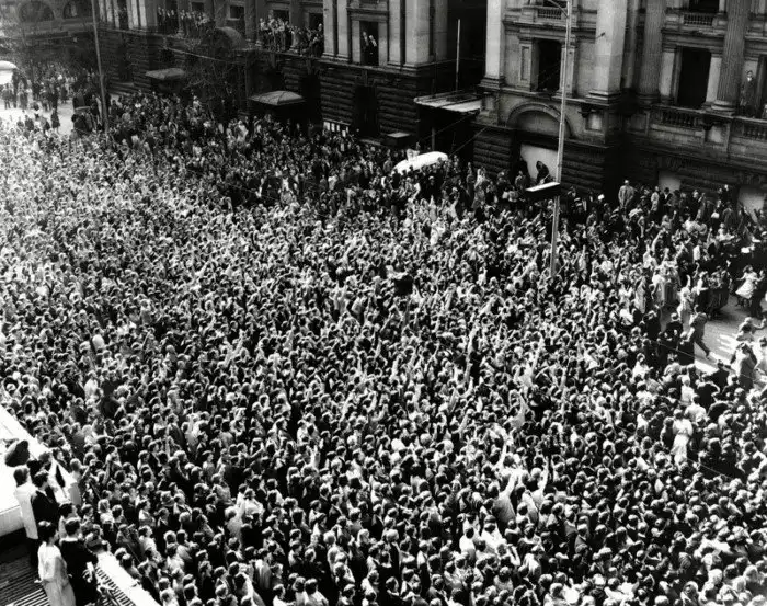 1966-ой, фанаты прощаются с The Beatles в лондонском аэропорту