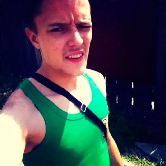 О прошлой гламурной жизни блондина напоминают лишь его “утиные” селфи из туалета.