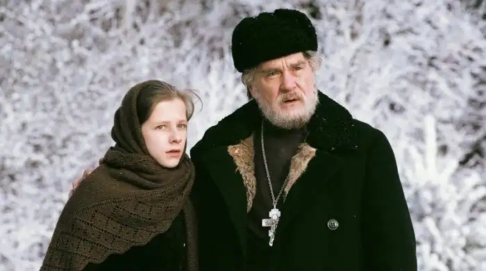 Актер Сергей Маковецкий в роли отца Александра и актриса Елизавета Арзамасова в роли Евы в фильме режиссера Владимира Хотиненко «Поп» (2009)