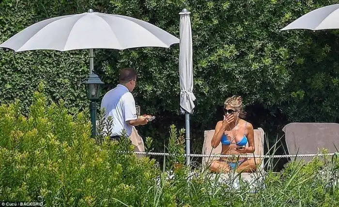 Но не все ж работать, иногда нужно и отдыхать. Энистон предпочитает в перерыве между съемками позагорать на шезлонге у бассейна, расслабиться, послушать музыку.