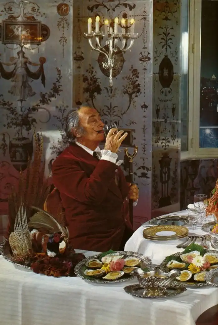 Дали обожал собирать гостей на свои веселые мероприятия. Например, собирать всех за общим столом. Все крайне сюрреалистично. Вот короткий репортаж с места происшествий: