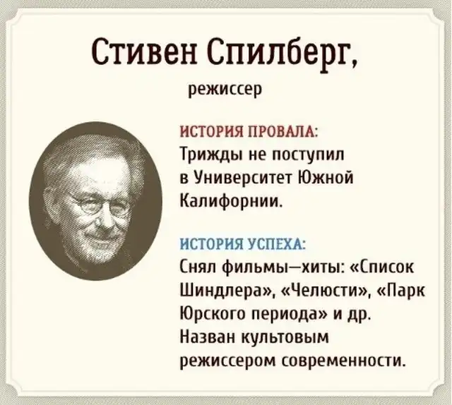 Эта пост лишь в очередной раз доказывает то, что не следует обращать внимание на мнение окружающих, когда вы пытаетесь добиться свой цели в жизни. На самом деле, вовсе не важно, что о вас думают окружающие люди, ведь многих известных людей из этой подборки считали по жизни неудачниками, но они смогли доказать свою гениальность.