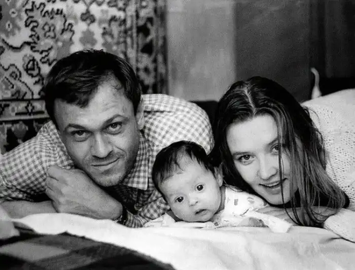 Новорожденная Юлия Меньшова с родителями Владимиром Меньшовым и Верой Алентовой