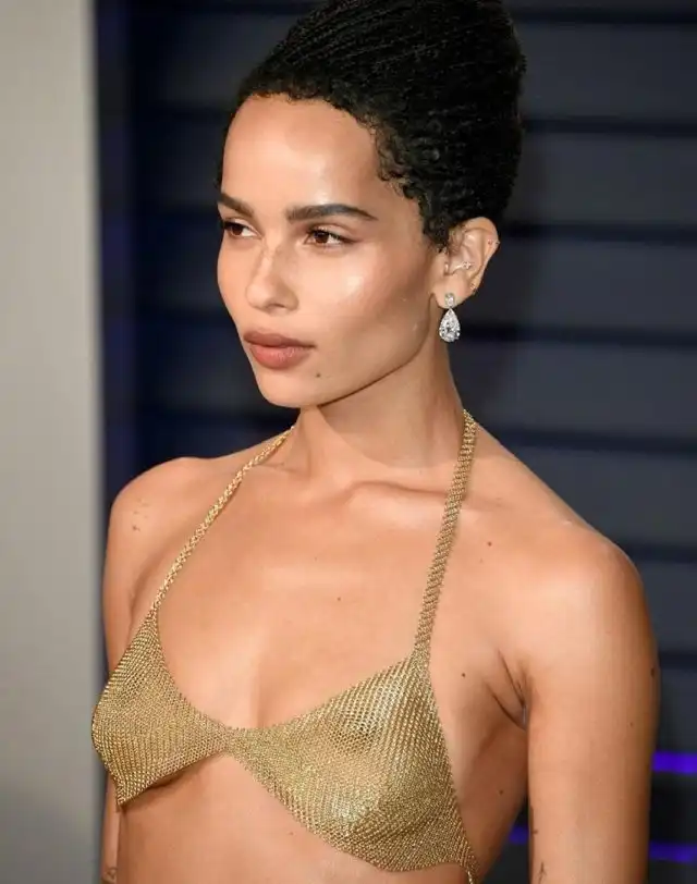 Дочь известного музыканта Ленни Кравица и актриса Зои Кравиц удивила всех своим откровенным нарядом, в котором она появилась на вечеринке после вручения премии "Оскар". На 30-летней Кравиц был надет золотой металлический топ, через который можно было увидеть ее обнаженную грудь. На вечеринку с Зои пришел ее ухажер - актер Карл Глусман.
