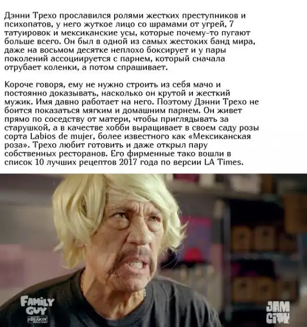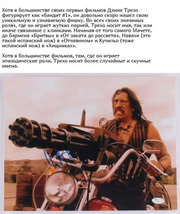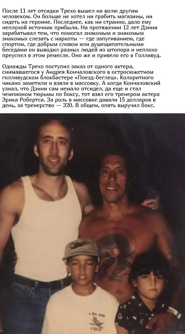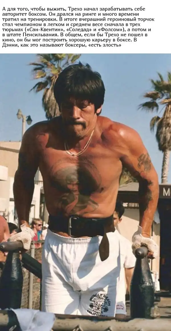 На днях одному из самых известных актеров трэш-кинематографа Дэнни Трехо исполнилось 75 лет. Хоть многим из нас он известен лишь только благодаря роли в серии фильмов "Мачете", в его биографии было довольно много интересных и действительно поразительных фактов. Предлагаю вам почитать историю его жизни в продолжении поста.