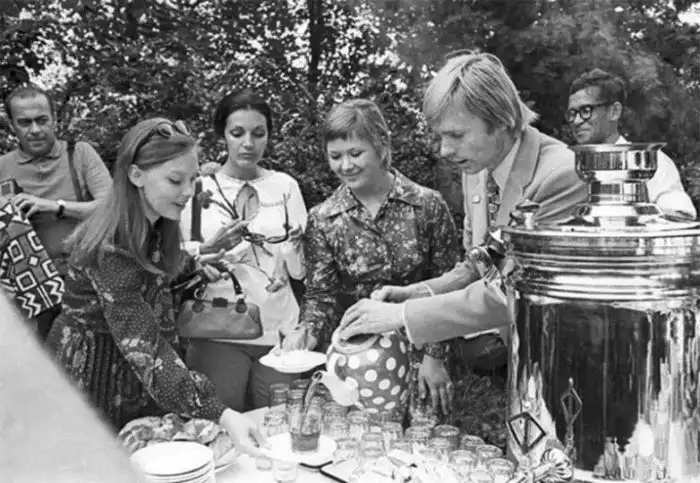 Людмила Савельева, Галина Польских, Олег Видов с кубинской киноактрисой Еслиндой Нуньес. 18 июля 1973 года. Фото Александра Конькова /Фотохроника ТАСС/