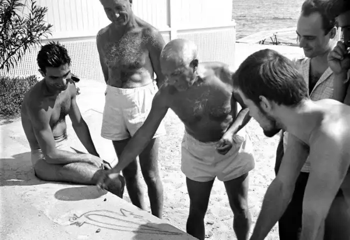 Пабло Пикассо, набрасывающий быстрый шедевр на пляже, 1950