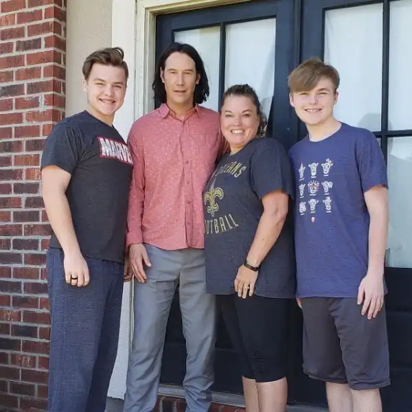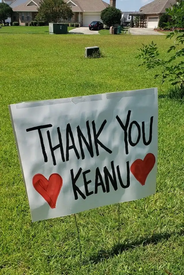 Представьте себе удивление Стейси, когда она увидела Киану Ривза на своем дворе. Актер подошел к ней и спросил: "Могу ли я подписать вашу табличку?". Естественно, она сказала "да". Затем женщина побежала в дом, чтобы позвать сыновей и принести Киану маркер.
