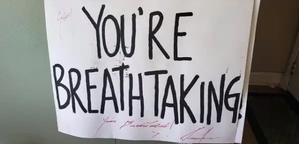 Ривз оставил на табличке свой "фирменный" ответ: "Стейси, ты потрясающая!"