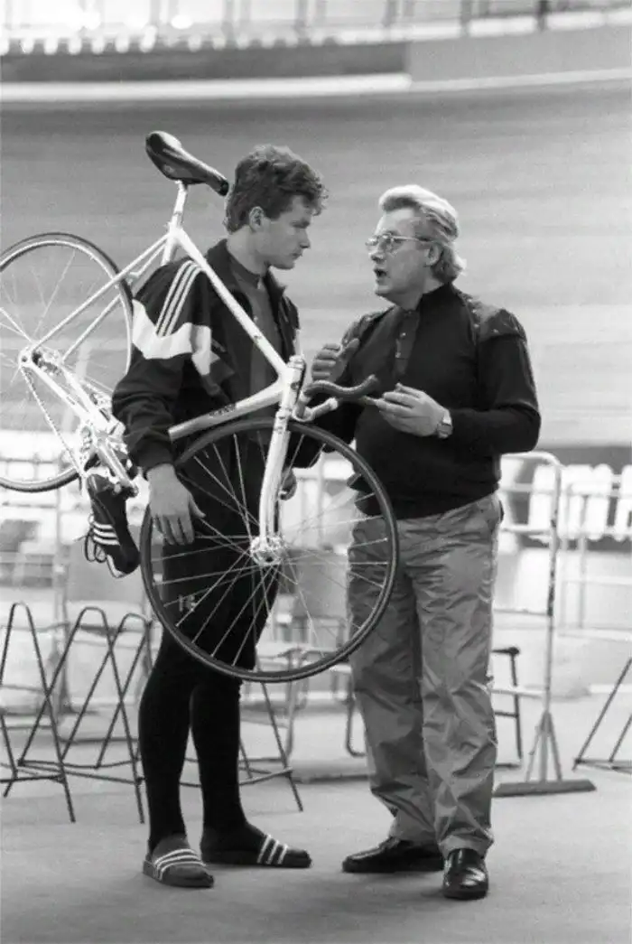 8. Олимпийский чемпион Александр Кириченко и бывший велогонщик, чемпион СССР на треке Аллан Чумак. 1989 год