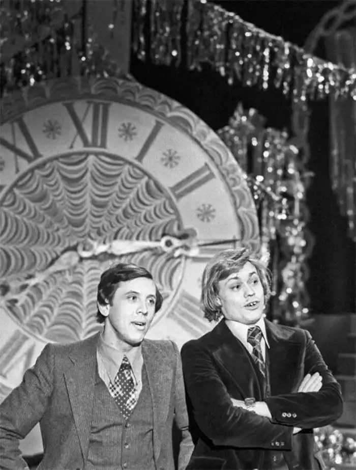 25. Артисты Валерий Золотухин и Николай Караченцов - ведущие новогоднего "Голубого огонька". 1978 год