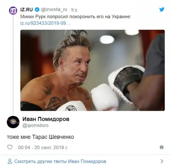 Микки Рурк захотел, чтобы его похоронили на Украине