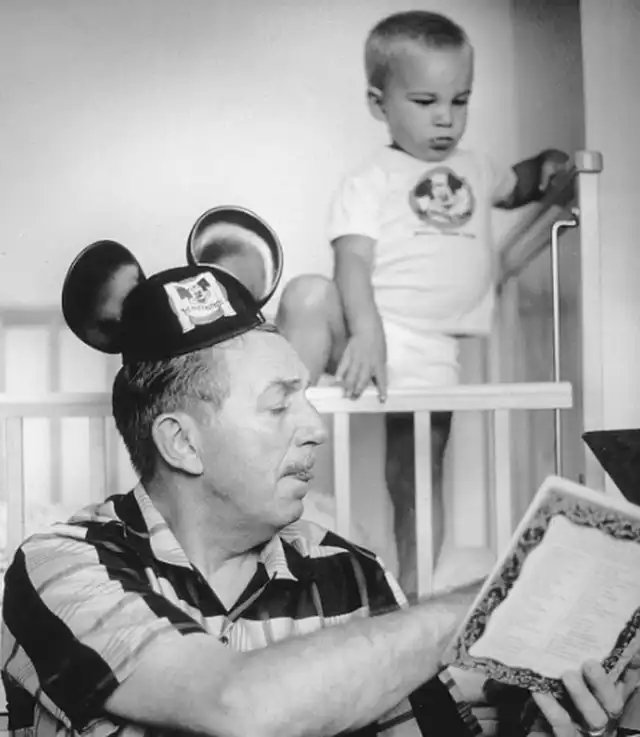 Уолт Дисней читает книжку своему внуку, 1955