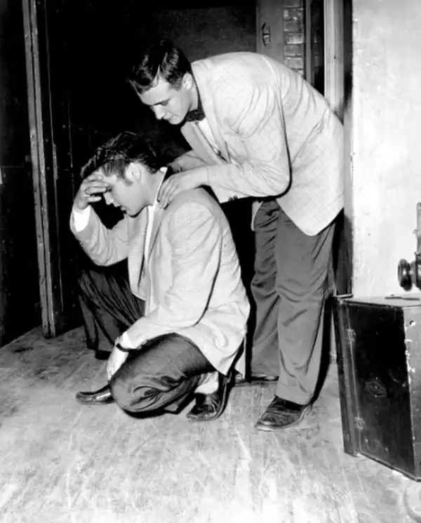 Элвис Пресли за сценой во время концерта в Миннесоте, 1956