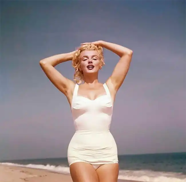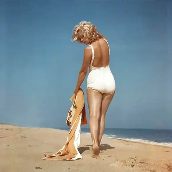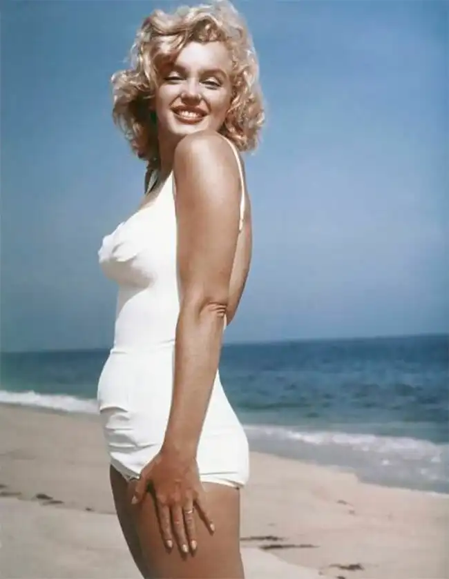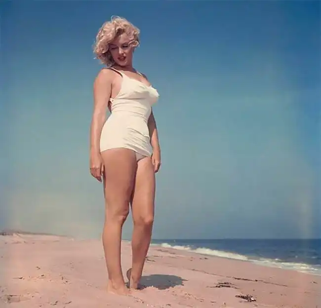 В июле 1957 года Сэм Шоу устроил для Мэрилин Монро фотосессию на пляже в Амагансетте, штат Нью-Йорк. В тот момент актриса находилась на втором месяце беременности, для съемки она выбрала белоснежный слитный купальник. На фотографиях Мэрилин и вправду счастлива. К сожалению, ее мечта о материнстве так и не осуществилась.