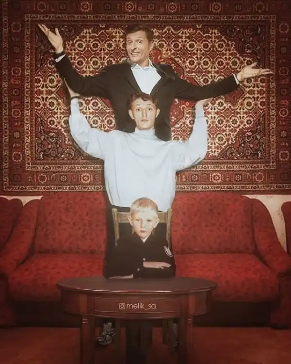 Мастер фотошопа из Нижнего Новгорода Юрик Мелик-Саргсян решил создать атмосферную и ностальгическую подборку с нашими знаменитостями. Он объединил в одном снимке отечественных звезд и их более молодые версии из прошлого. Получилось весьма душевно. Давайте посмотрим.